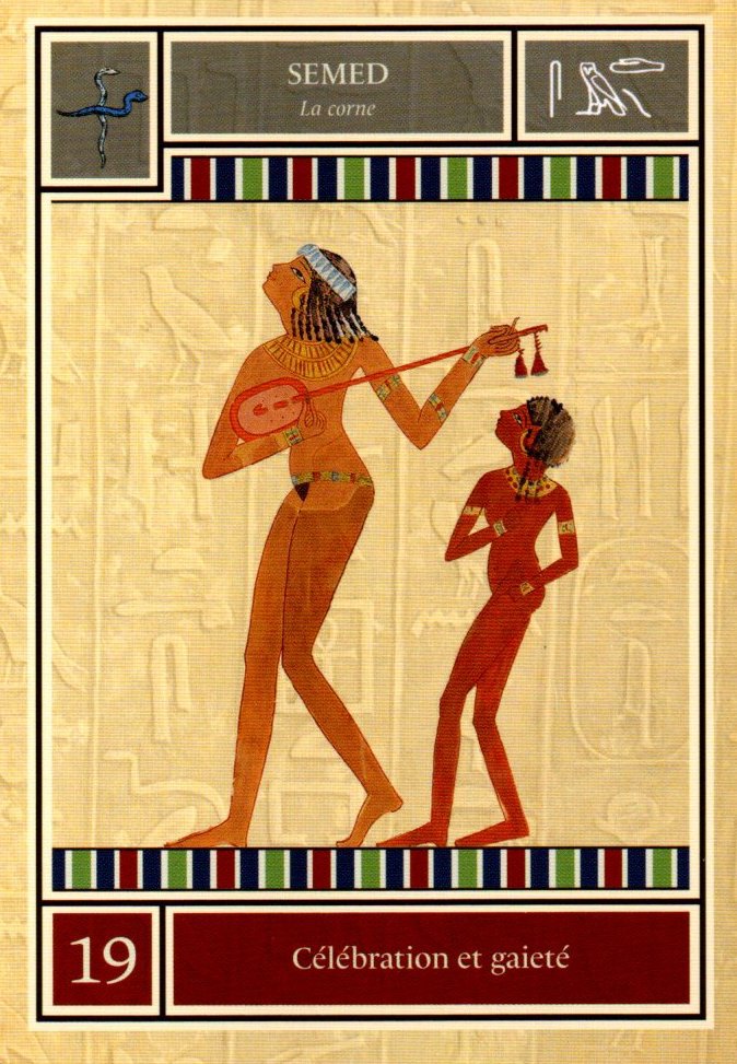 La corne est un appel à la fête et au bonheur. Si vous traversez actuellement une période sombre, cette carte annonce que la bonne fortune est proche. En fonction des cartes voisines, il peut s'agir également d'une invitation à considérer une situation sous un nouvel angle. Le bonheur est là où on le trouve, et on peut toujours choisir d'être heureux, même si les circonstances ne sont pas exactement telles qu’on aurait aimé.