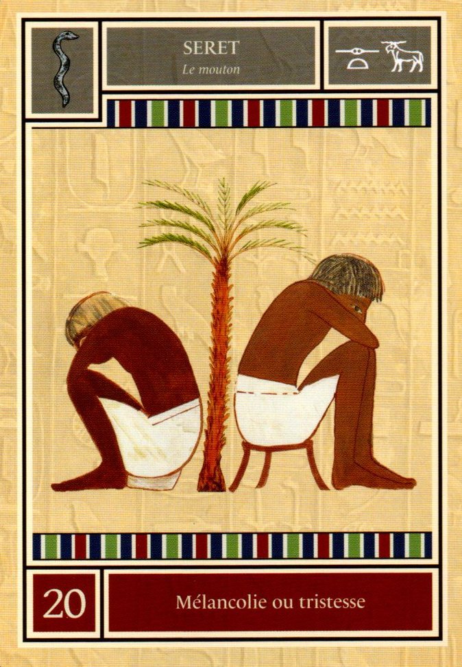 Cette carte montre qu'il y a de la tristesse ou du chagrin dans le moment présent, mais que cela ne durera pas. L'arbre de vie, aujourd'hui dépourvu de fruits, montre déjà des bourgeons au sommet et sera bientôt à nouveau luxuriant et vert. Il n'y a pas de mal à être mélancolique, car les larmes que vous versez imprègnent le sol et apportent une nouvelle vie au monde.