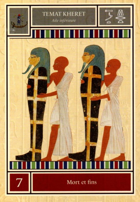 Termat Kheret, l'aile inférieure, est la fin du groupe des décans de la Grue et représente également la fin et la mort en général. Les adeptes du tarot traditionnel comprendrons pourquoi cette carte n'est pas la dernière : parce que la mort n'est qu'une étape de notre existence. Tout comme la carte de la Mort se trouve en treizième position dans les arcanes majeures du tarot, cette carte ayant une signification et un symbolisme semblable se trouve ici lié au septième décan.