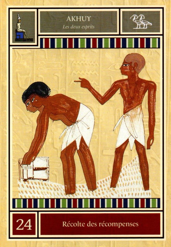 Les bénédictions inhérentes à cette carte peuvent être matérielles ou spirituelles, mais dans tous les cas, elles sont entièrement bonnes et vous les récolterez en temps voulu. La carte Akhuy symbolise le fait d'obtenir ce que l'on veut, mais uniquement grâce au travail que l'on a fourni pour cela. Il ne s'agit pas de bénédictions divines ou d'argent qui tombe du ciel, mais plutôt d'une récompense pour vos efforts.